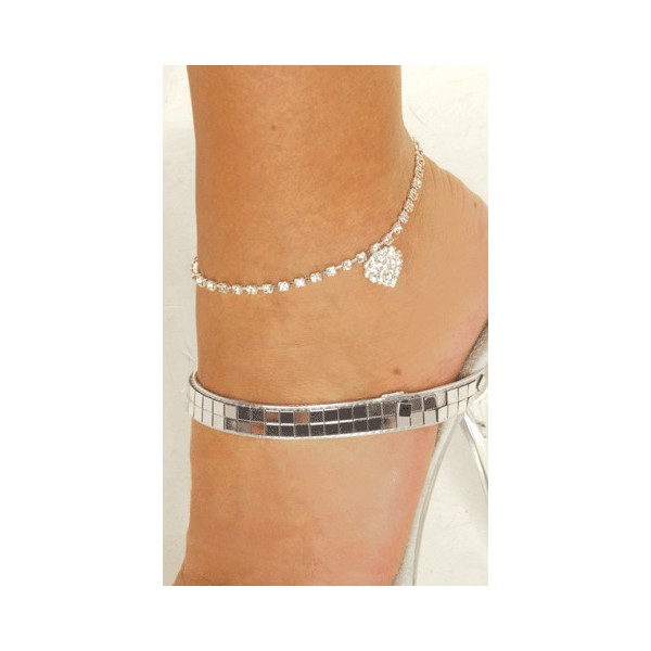 Rhinestone Heart Ankle Bracelet. Reese Rhinestone Heart Anklet is perfect for any night of the week. Wear it with your go to dress or with your sexiest lingerie set. This sparkling Rhinestone Heart Anklet is a beautiful finishing touch to your jewelry.