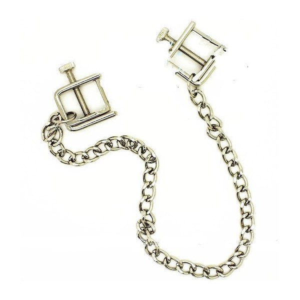 Steel Vise Nipple Clamps with Chain in Colours Silver or Black.