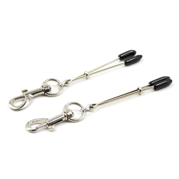 With a tweezer-style design, these nipple clamps have D Clips to attach weights or other items. As nipple clamps, they offer function and comfort thanks to a sliding ring (to modify the pressure) and a vinyl coating for comfort and better grip.