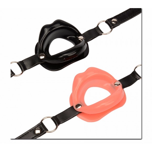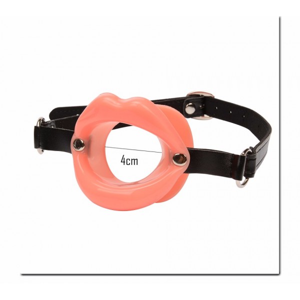 Soft silicone Big Lips Open Mouth Gag With Black Adjustable Strap.
